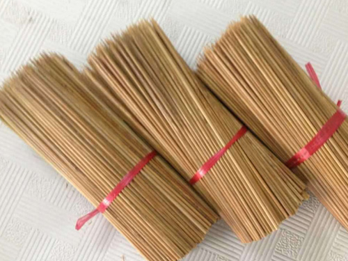 這得從原材料說起,將成長三年以上的竹子砍下來,用鋸子鋸斷,一般會用竹子的中部鋸成1米6或1米9長的,然后用撞片機把竹斷撞成一片一片的,再上機器打節,去掉青皮和里邊的黃,再分層,上面一層帶點青的和下面一層帶點黃的報價不一樣,再分別在拉絲機里 拉成竹絲,成絲后要經過防蛀處理,涼干,然后再鋸 成所需竹簽的長度,再放在拋光機里邊拋光,拋光好后放在銷尖機上銷尖,銷尖好就包裝成成品了。